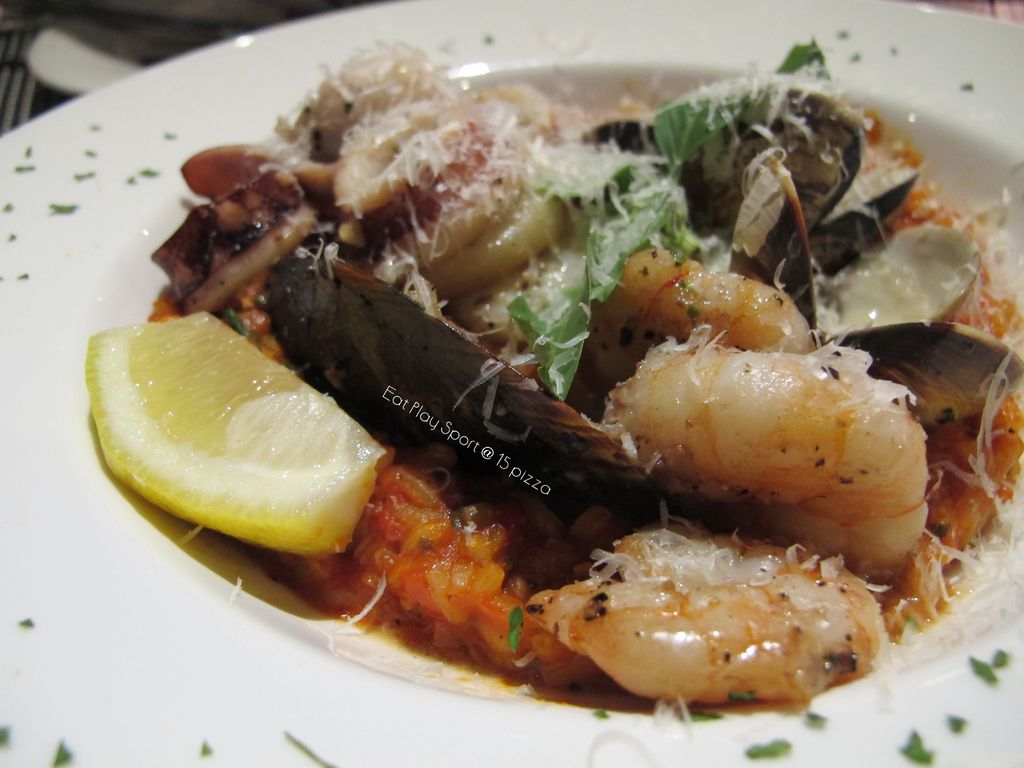 燉飯米粒口感恰到好處,也很夠味,上面的綜合海鮮給的很大方